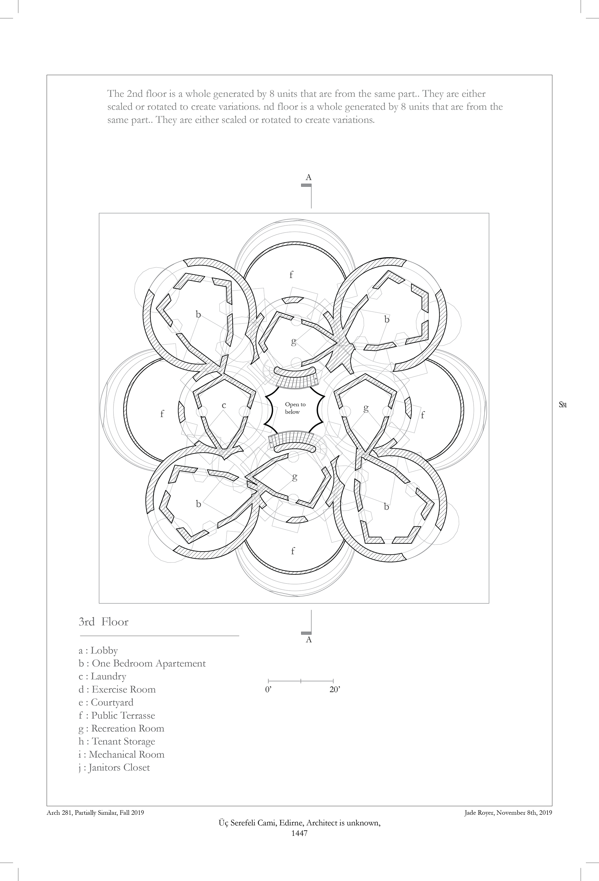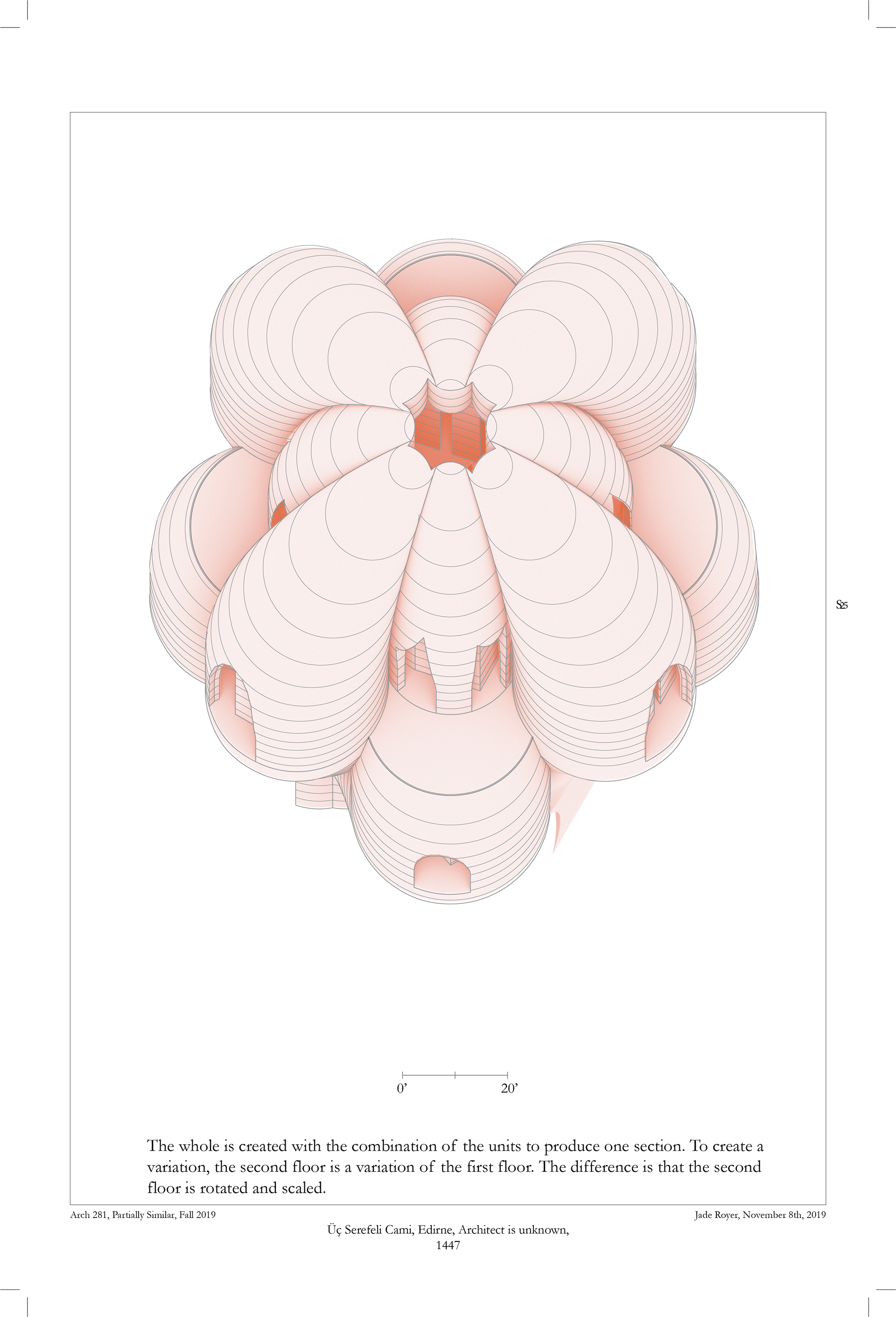 Fall 2019, the program was to create an apartment building that was inspired from our precedent. The precedent I chose is Uc Serefeli Cami from an unknown architect, in Edirne, Turkey, in 1447.